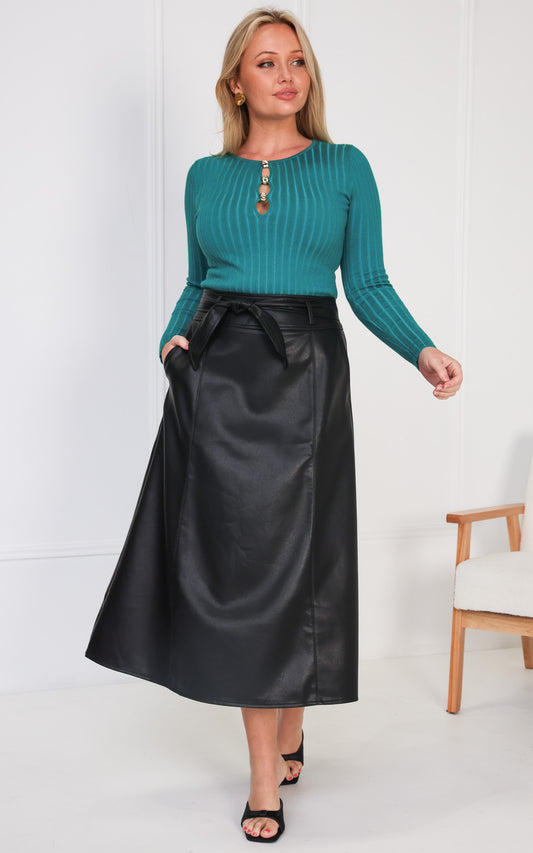Araya Knit Split Midi Skirt - Chocolate Brown