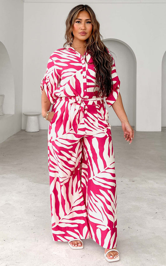 Paradise Lily Wide Leg Pants - Pink Print