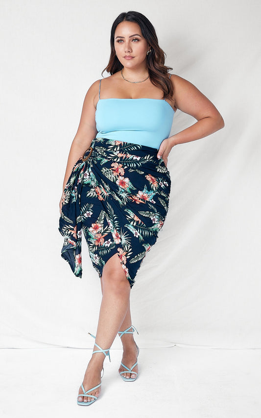 Havana Wrap Midi Skirt - Navy Tropical