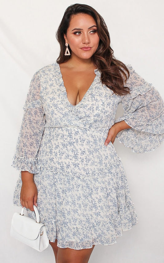 Rebel Cause Dress - White Blue Print