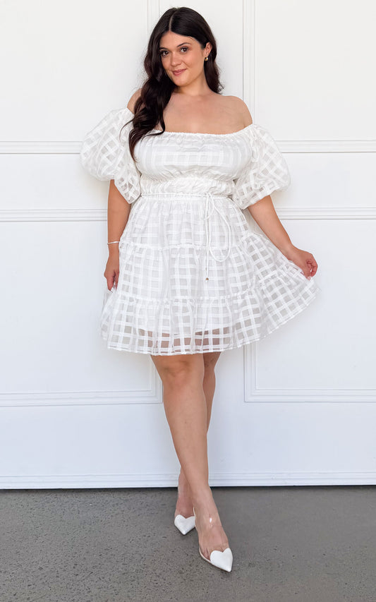 Dasha Mini Dress - White Check Organza