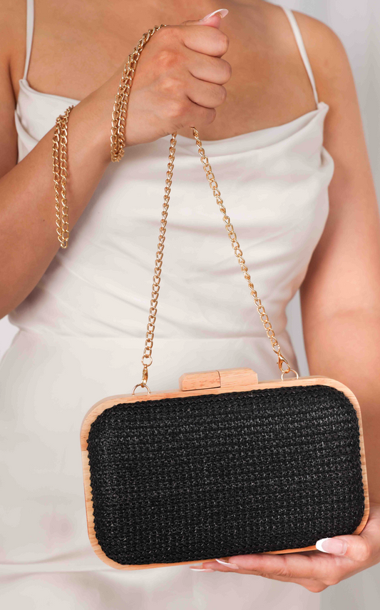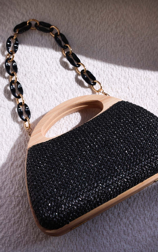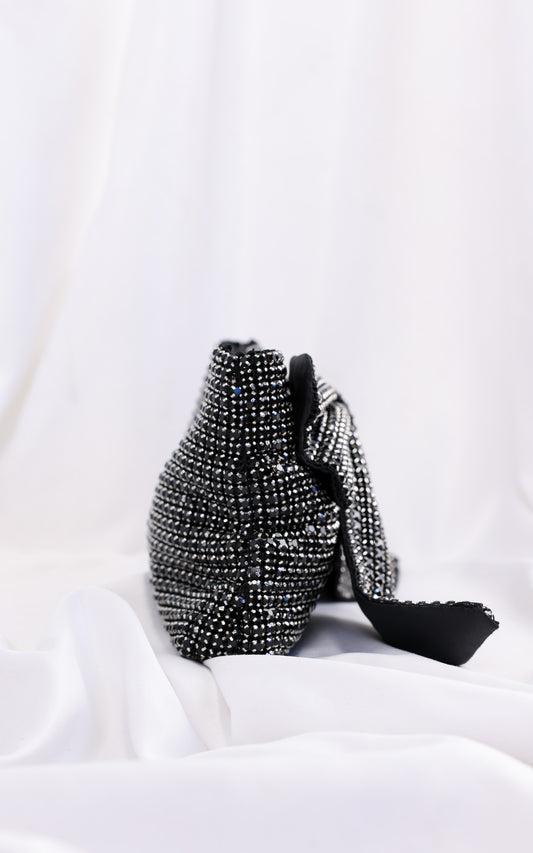 Bessie Crystal Rhinestone Clutch Bag - Bow Black