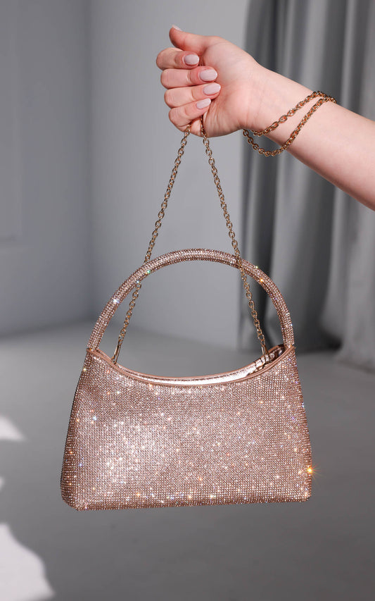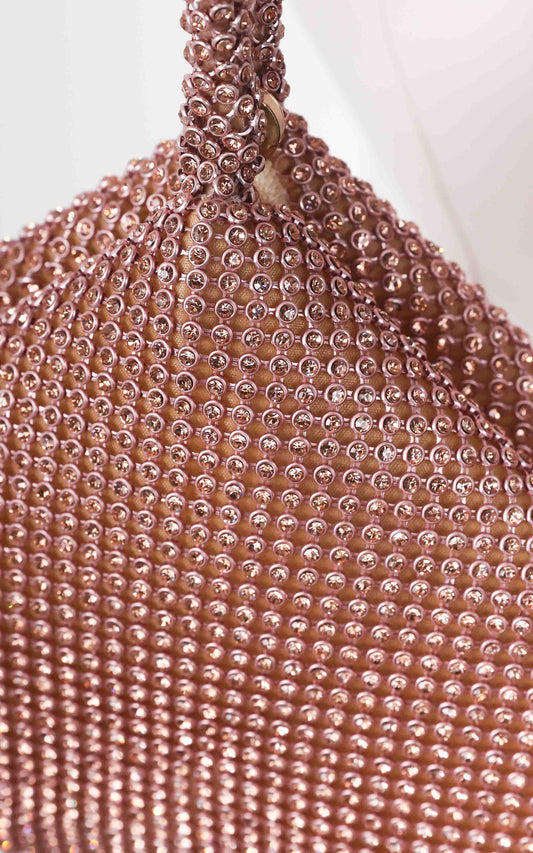 Ezza Rhinestone Wristlet Bag - Rose Champagne