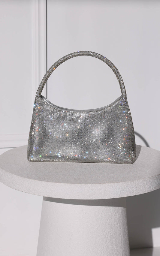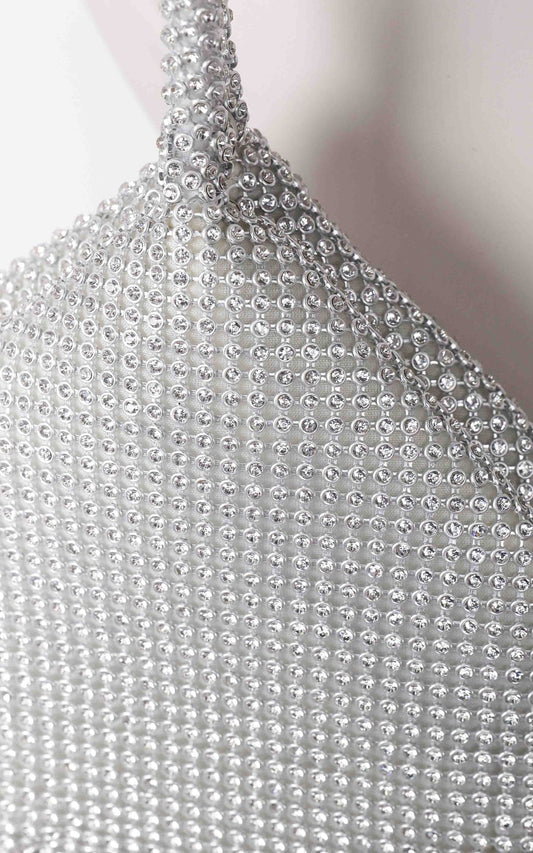 Cassian Crystal Rhinestone Clutch Bag - Silver
