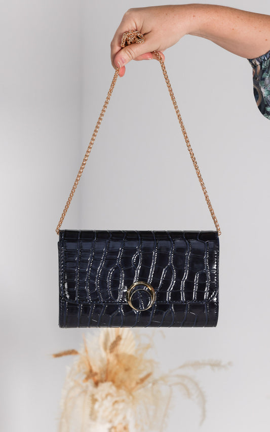 Gretta Croc Texture Clutch Bag - Dark Navy