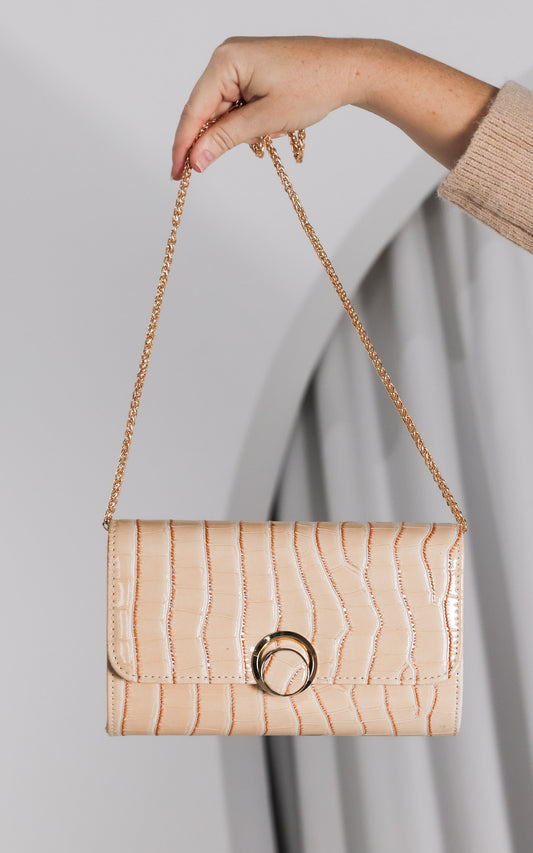Gretta Croc Texture Clutch Bag - Nude Beige