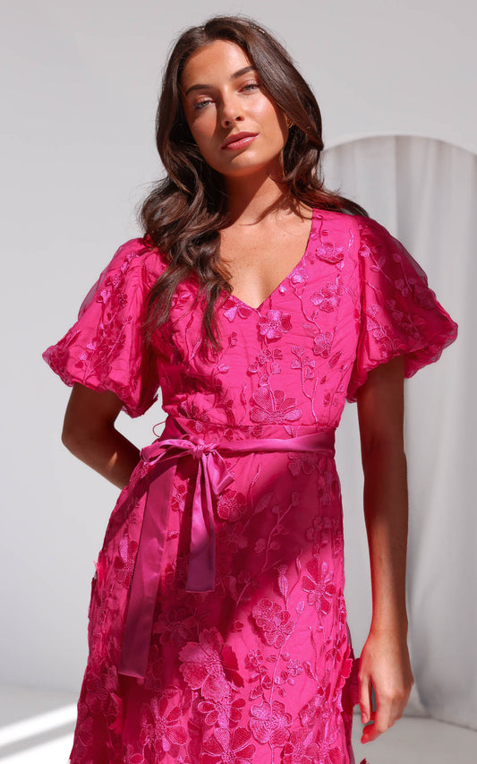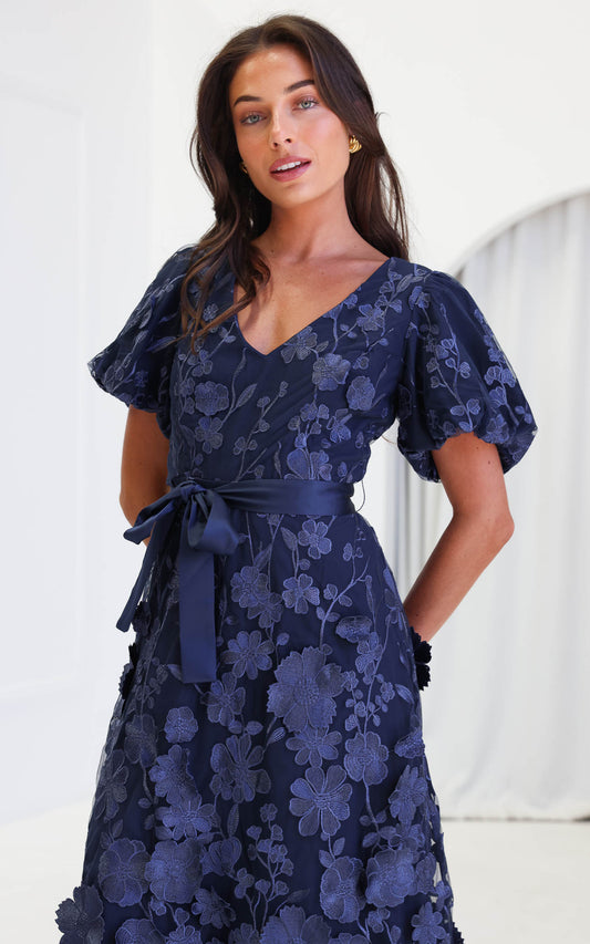 Relius Mesh Maxi Dress - Navy Pink Floral