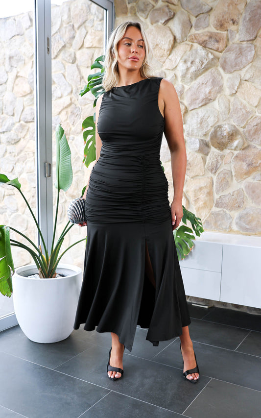 Olida Mesh Maxi Dress - Black Pink Purple Floral