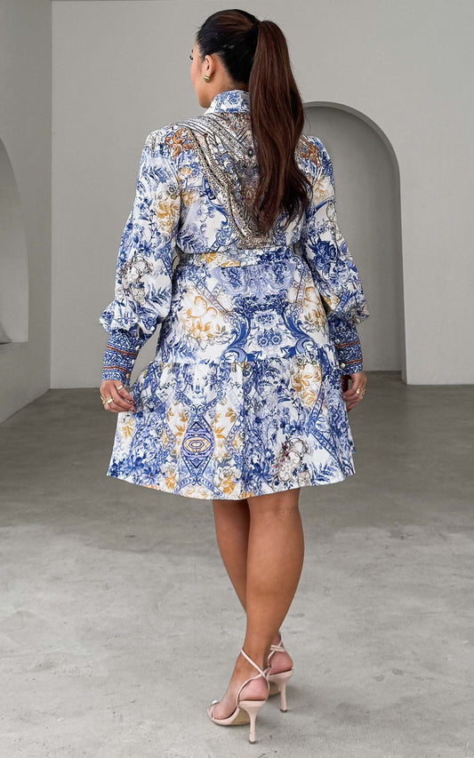 Conessa Mini Dress - White Blue Floral