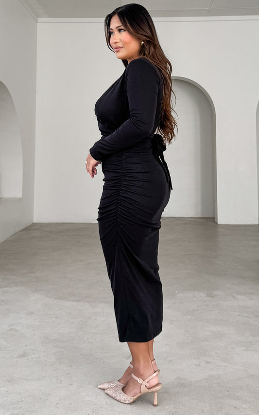 Mimi Long Sleeve Midi Dress - Black