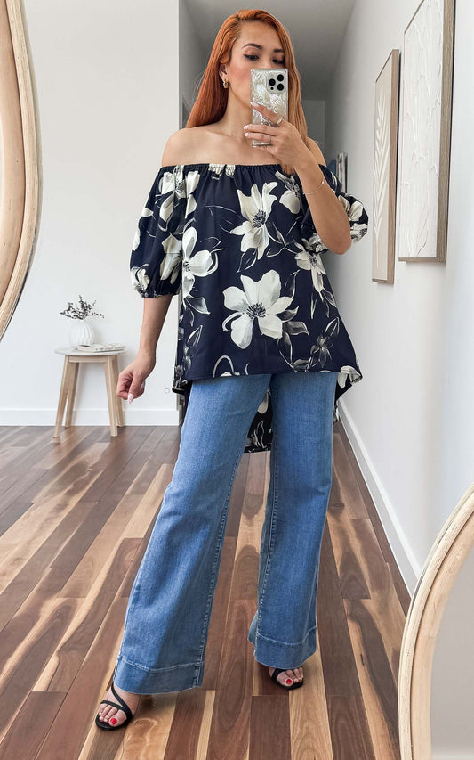 Myrtle Top - Charcoal Navy Floral