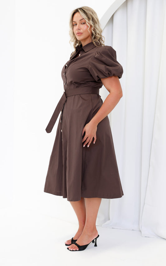 Ophelia Short Sleeve Maxi Dress - Dark Brown