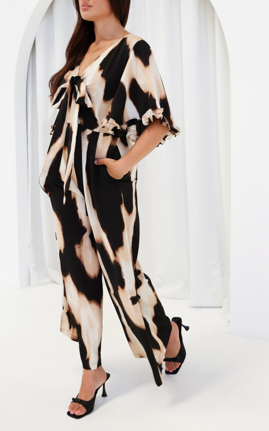 Tessa Wide Leg Jumpsuit - Big Leopard Print