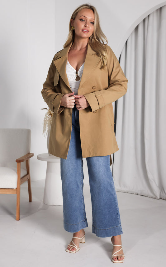 Taylan Cropped Trench Coat - Mushroom Beige