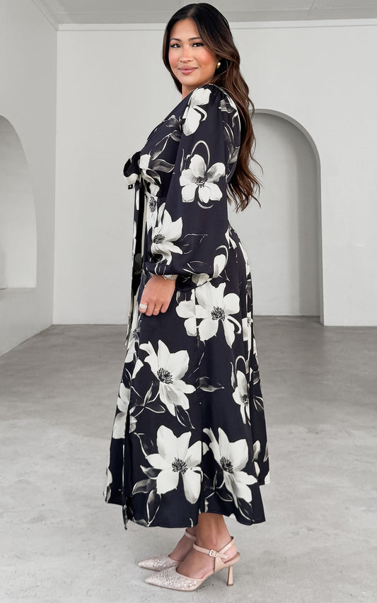 Conessa Long Sleeve Midi Dress - Charcoal Navy Floral