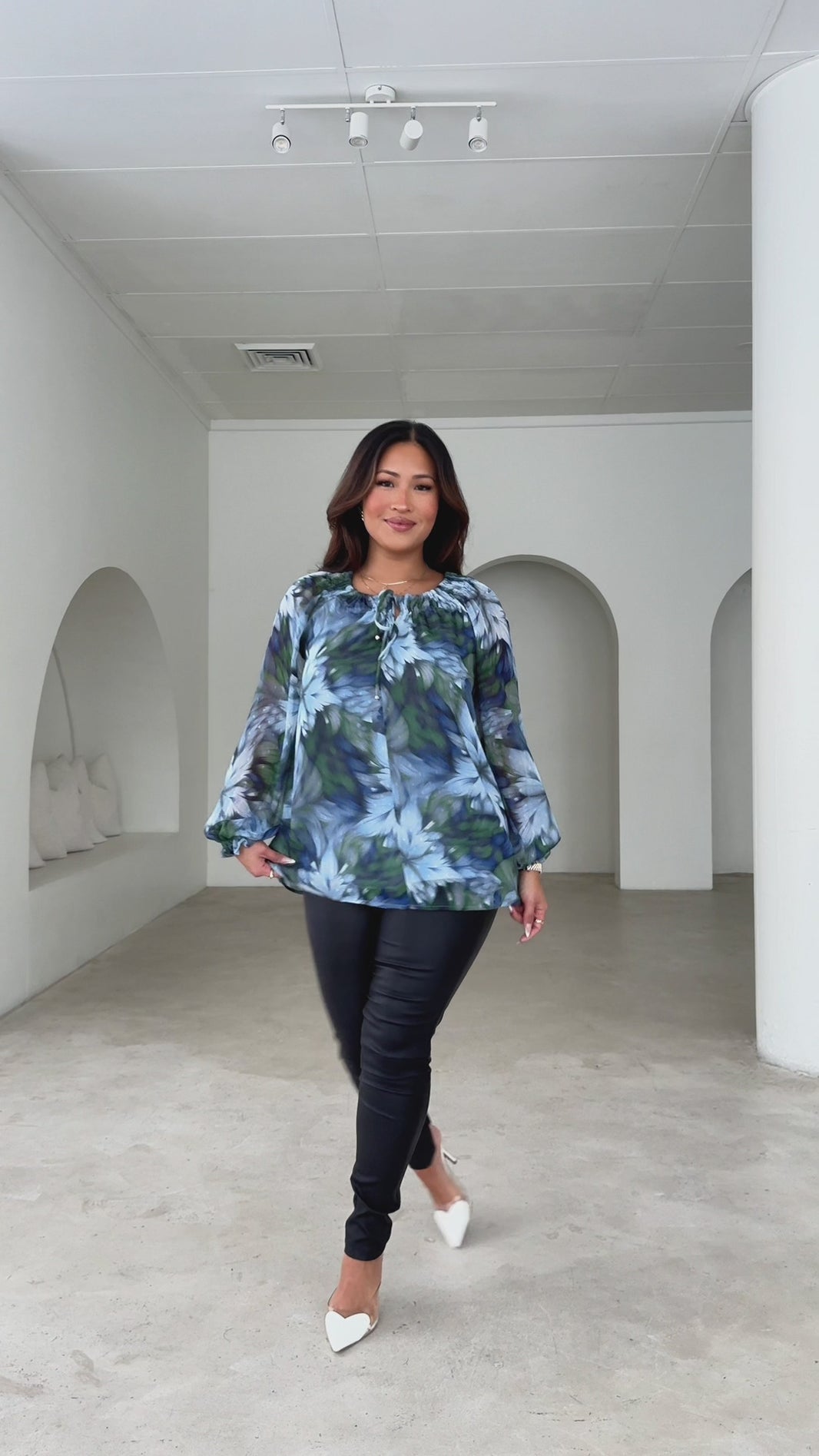 Baylene Top - Blue Green Floral Texture
