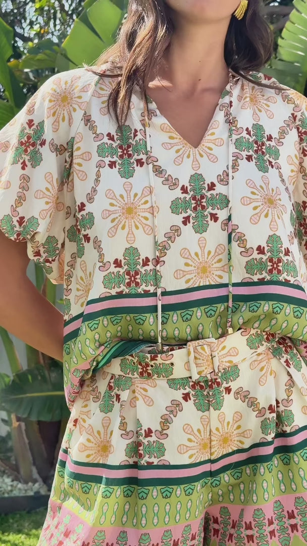 Nakita Top - Cream Green Multi Print