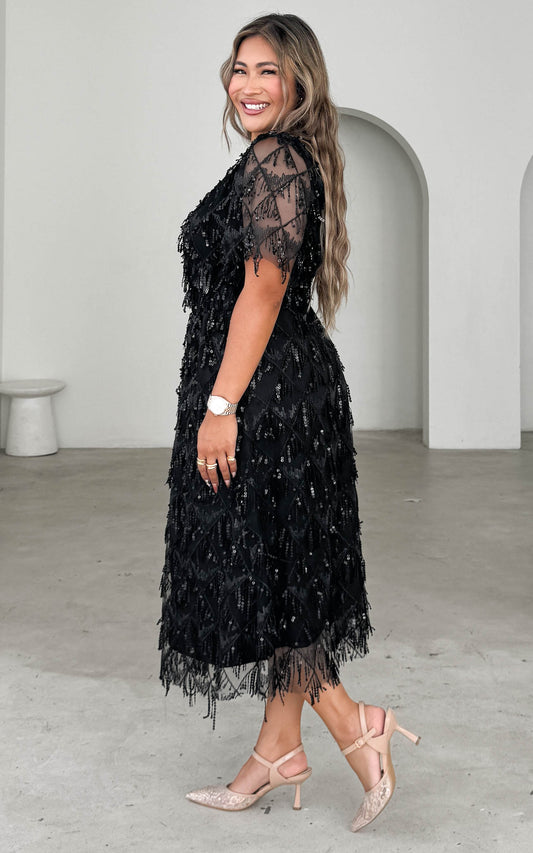 Arilyn Sequin Midi Dress - Black