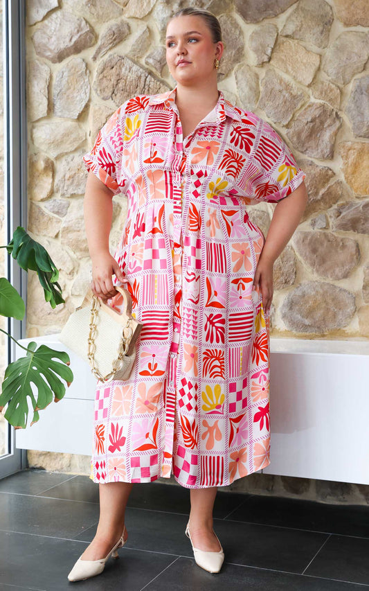 Rainier Midi Dress - Pink Multi Print