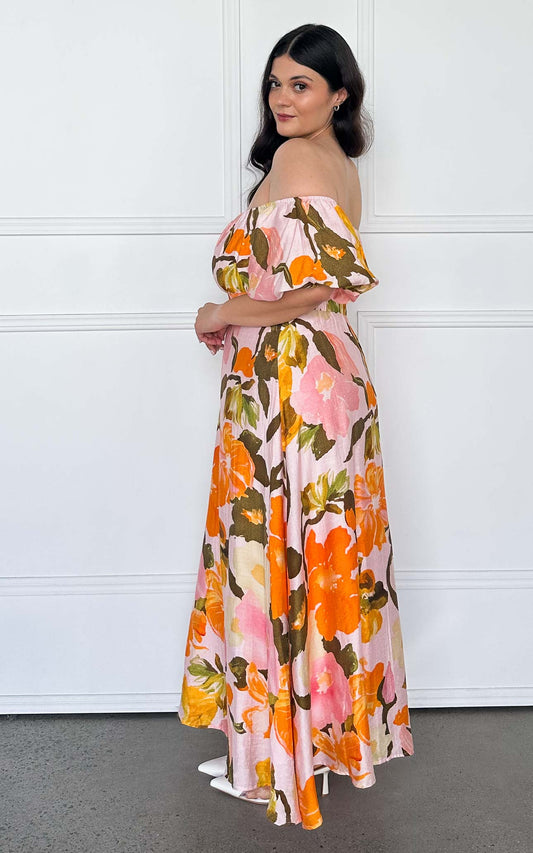 Alora Maxi Dress - Pink Orange Floral
