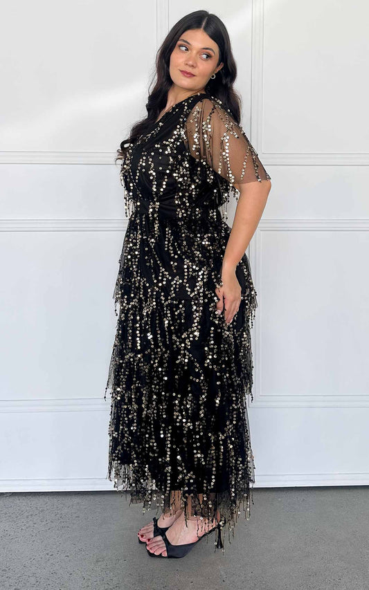 Irisa Sequin Maxi Dress - Black Gold