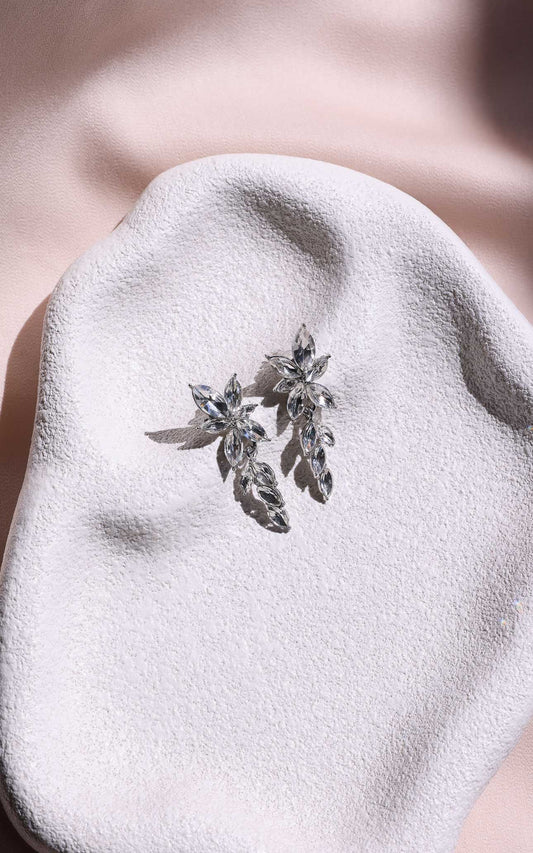 Krysta Drop Stud Earrings - Silver Clear Cluster