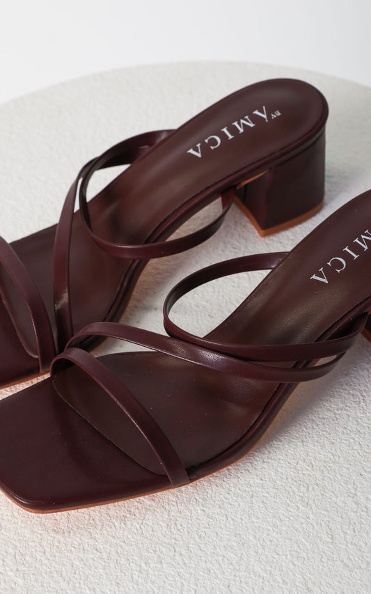 Yora Block Mule Heels - Maroon Brown