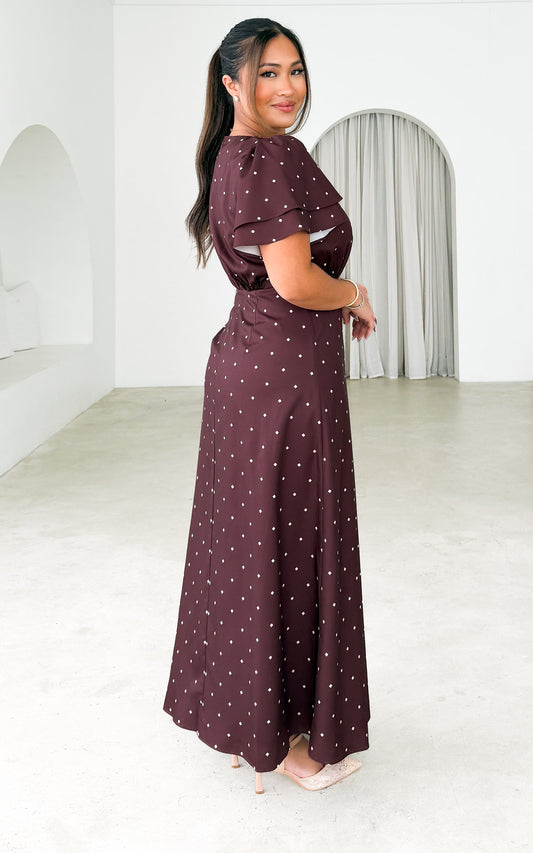 Behati Maxi Dress - Chocolate Brown Cream Diamond