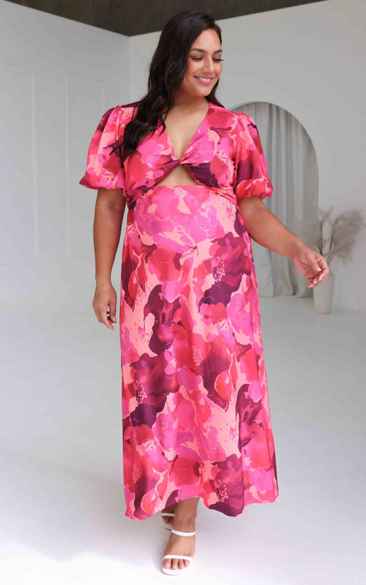 Augustine Short Sleeve Maxi Dress - Red Multi Print