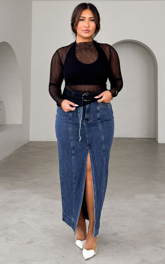Malish Denim Maxi Skirt - Dark Blue