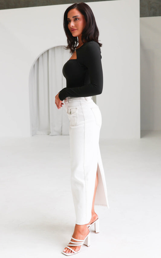 Sarika Denim Maxi Skirt - White