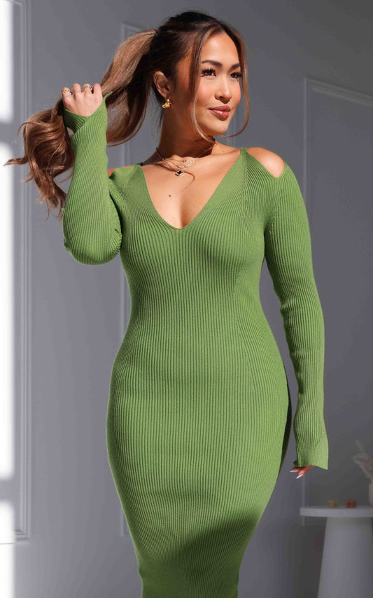 Before You Go Long Sleeve Mesh Dress - Green Metallic Glitter
