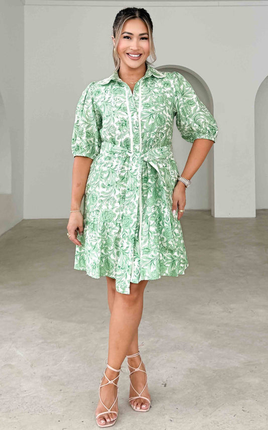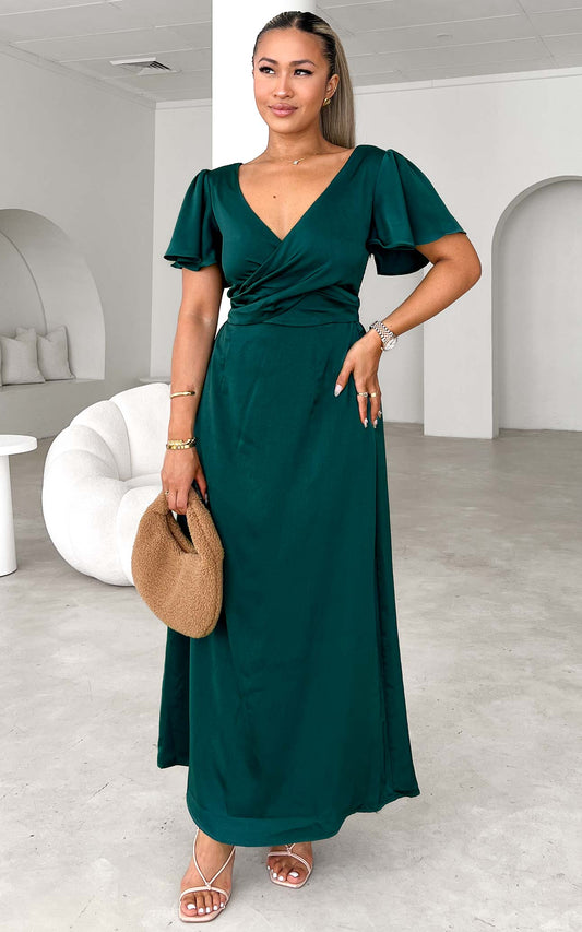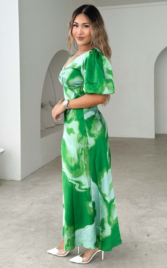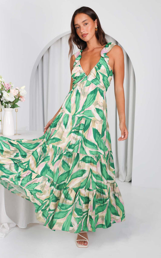 Roza Short Sleeve Maxi Dress - Green Multi Floral