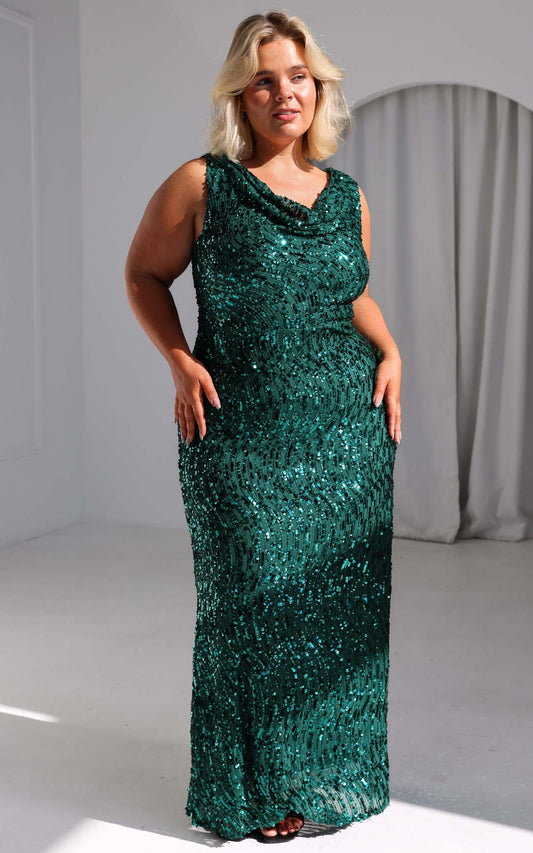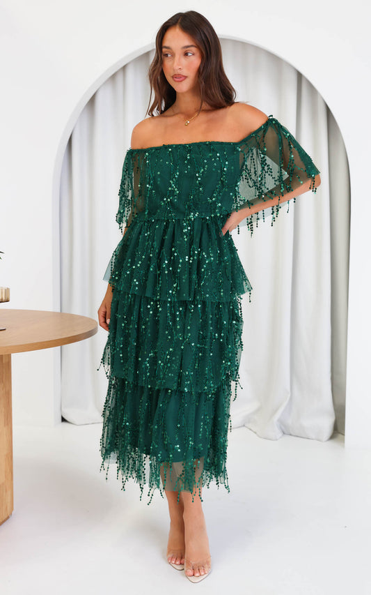 Beyond The Stars Sequin Maxi Skirt - Emerald Green