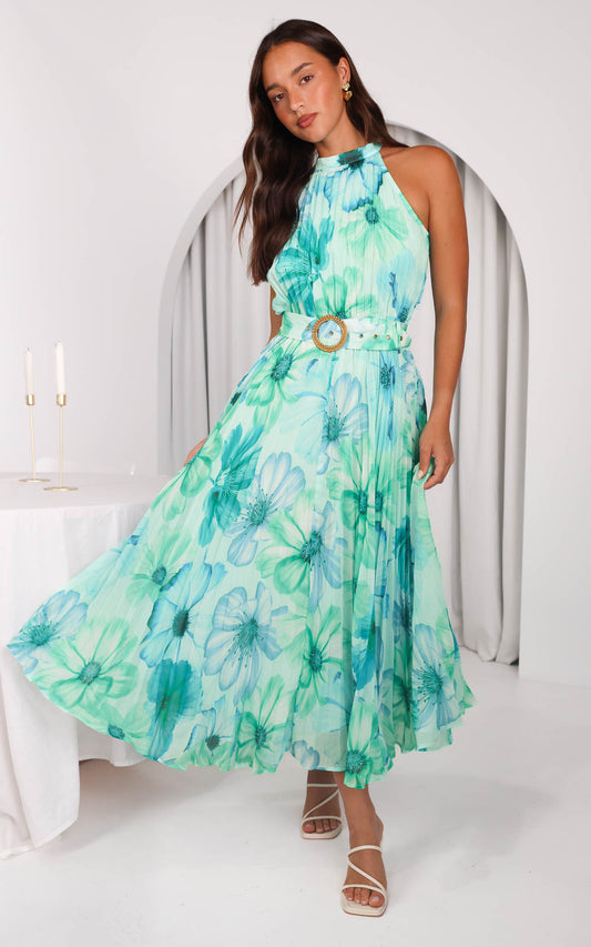 Diana Short Sleeve Maxi Dress - Green Blue Floral