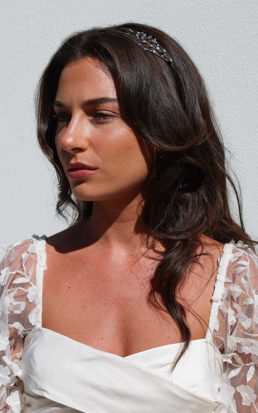 Aphrodite Headband - Silver Diamante Leaf