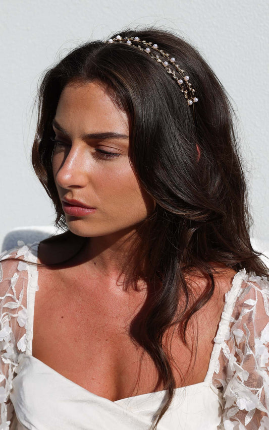 Emersyne Double Layered Headband - Gold Leaf Pearl Diamante