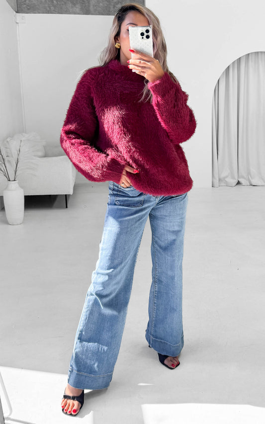 Teddy Knit Jumper - Wine