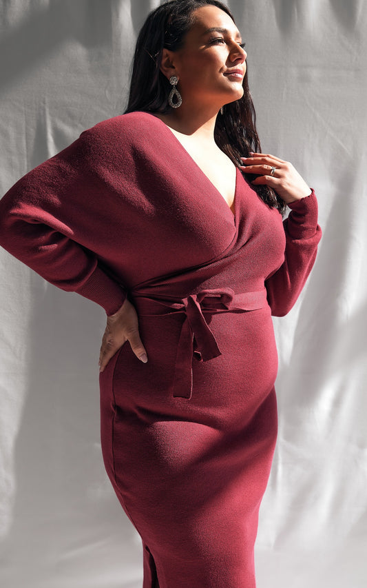 Catherine Knit Midi Dress - Burgundy