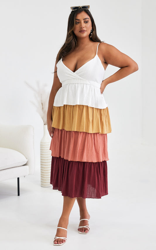 Calissa Mesh Midi Dress - Rainbow Abstract Print