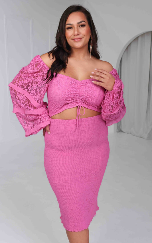 Before You Go Short Sleeve Mesh Dress - Hot Pink Metallic Glitter