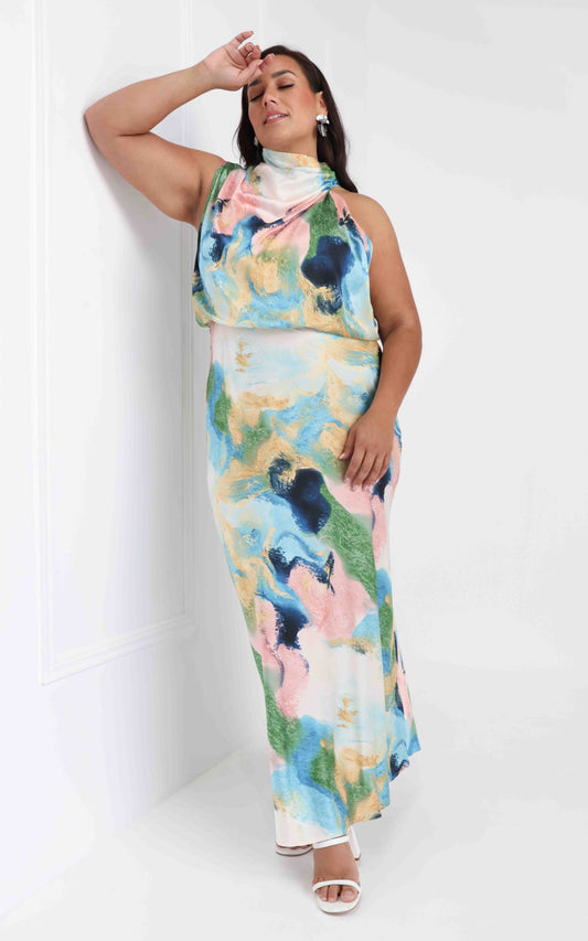 Martisha Maxi Dress - Green Blue Print