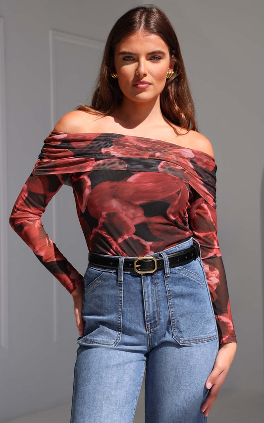 Calissa Mesh Midi Dress - Rainbow Abstract Print