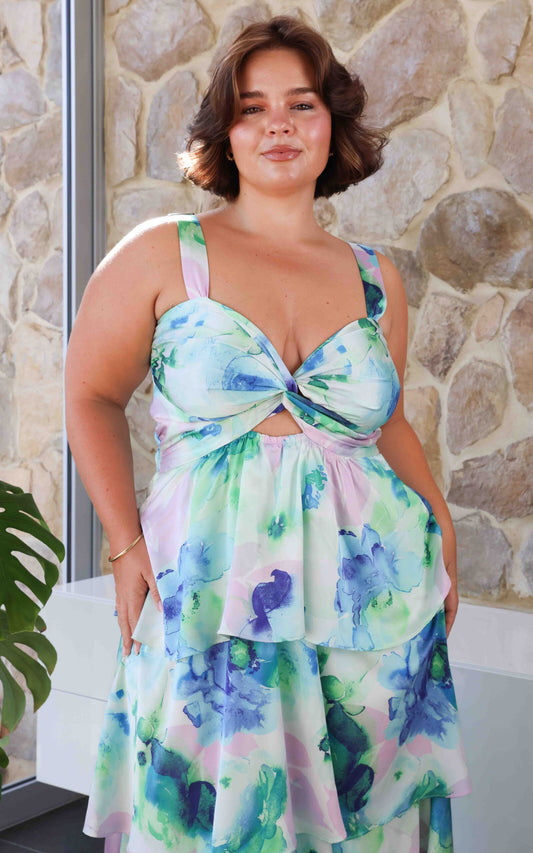 Eunice Mesh Midi Dress - Orange Pink Floral
