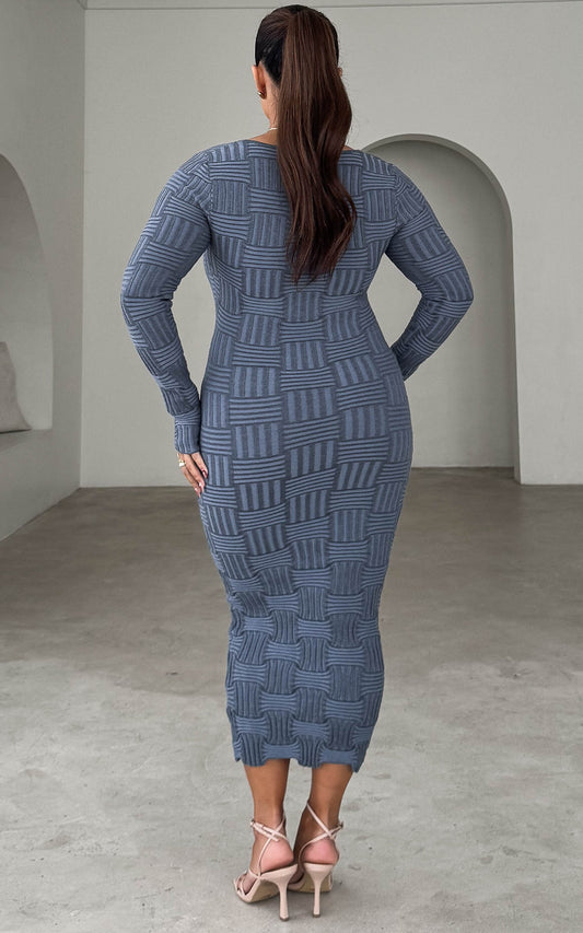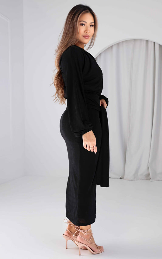 Kobe Long Sleeve Midi Dress - Black Sheen