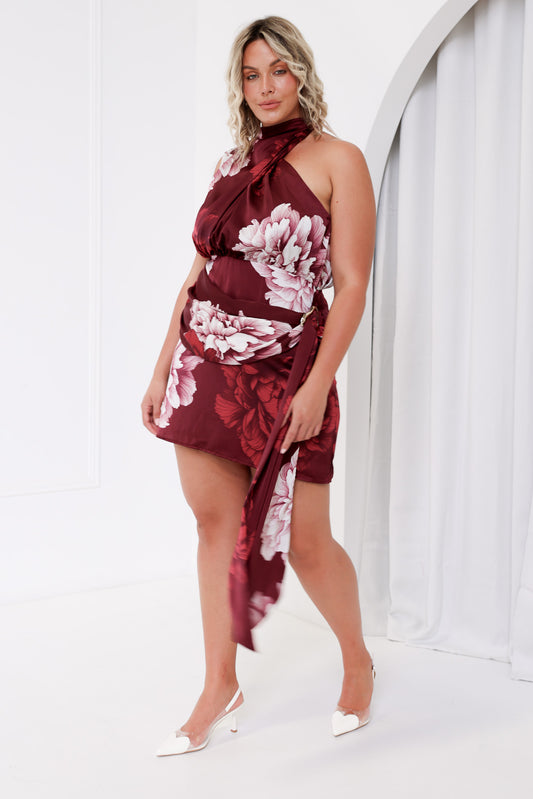 Iluka Mini Dress - Wine Floral
