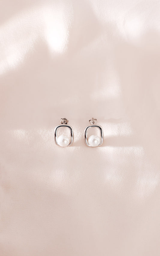Josia Stud Earrings - Silver Rectangle Pearl