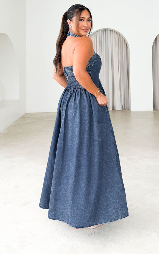 Lyra Maxi Dress - Blue Denim Wash