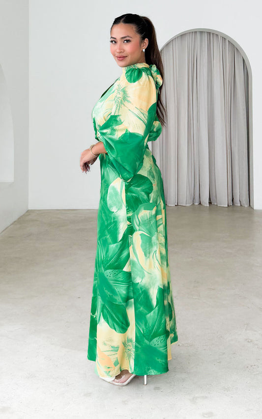 Sigrid Maxi Dress - Green Yellow Floral
