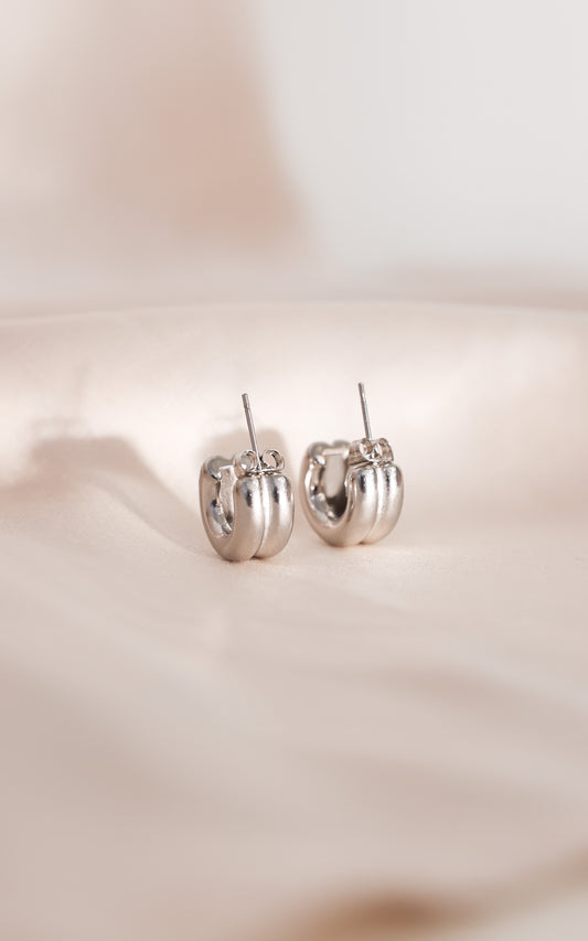 Tristan Hoop Earrings - Silver Double Rib